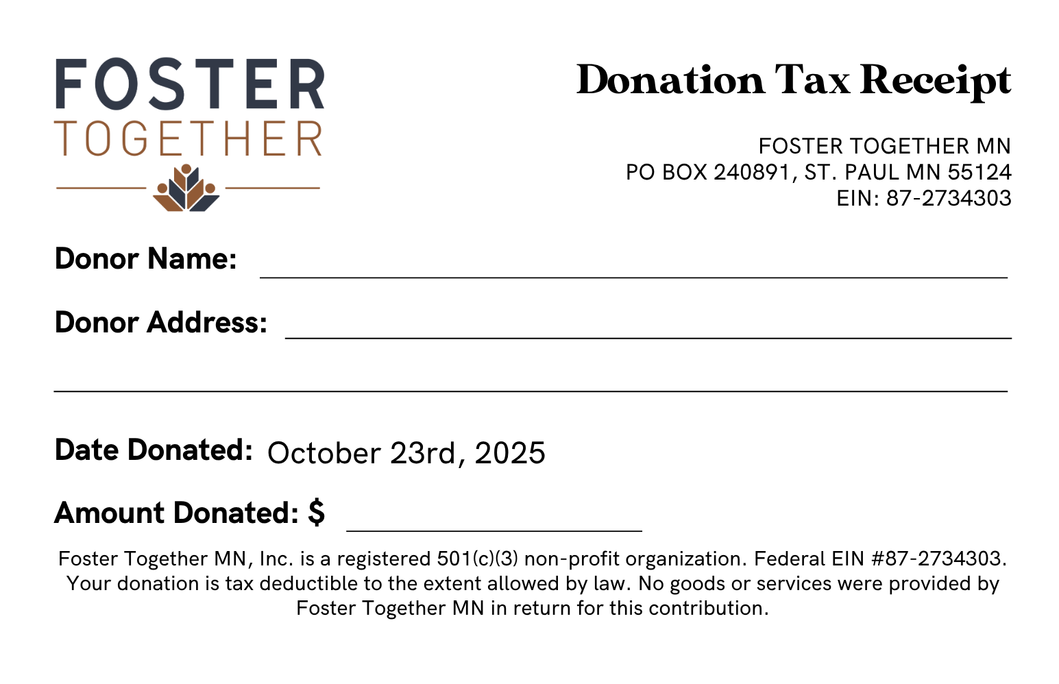 Foster Together MN Donation Tax Receipt (png)